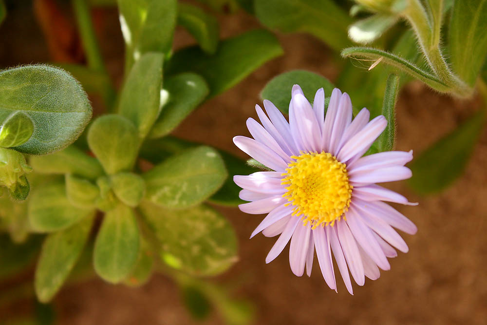 ダルマギクは日本海沿岸、西日本の海岸に咲く野菊です。浜辺に咲くため、浜菊(太平洋側の浜辺に咲く野菊)同様に茎や葉はとても肉厚です。